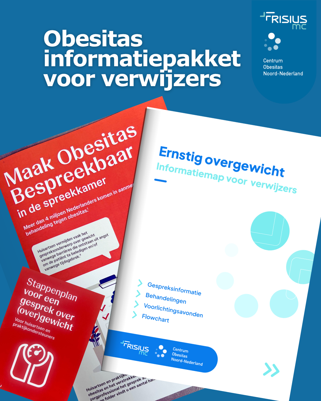 Centrum Obesitas Noord-Nederland stelt een informatiemap beschikbaar met actuele en praktijkgerichte materialen ter ondersteuning van het gesprek over obesitas en de verwijzing naar passende zorg.