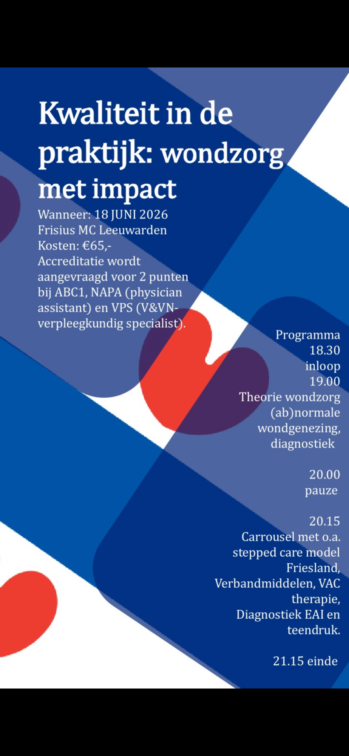 Accreditatie wordt aangevraagd voor 2 punten bij ABC1, NAPA (physicianassistant) en VPS (V&VN-verpleegkundig specialist).